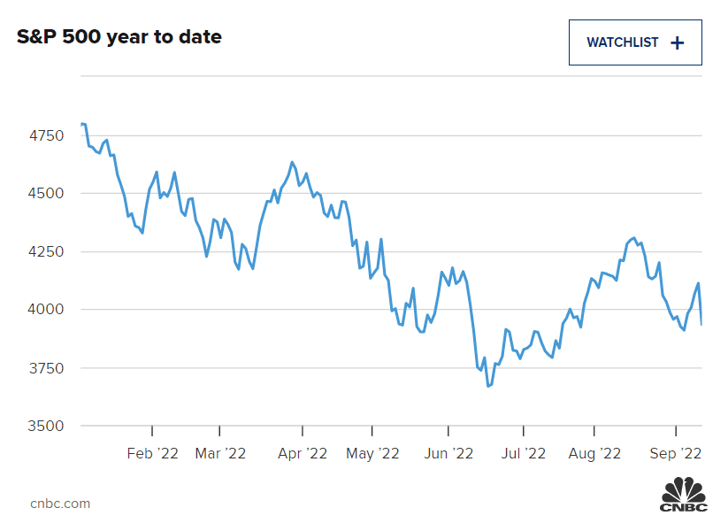 V úterý se index S&P 500 propadl o 4,3 % a uzavřel na hodnotě 3 932,69.