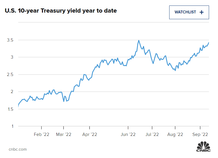 V reakci na to došlo k prudkému výprodeji akcií, růstu dolaru a růstu výnosů dluhopisů. Výnos desetiletých státních dluhopisů se vyšplhal zpět k letošnímu maximu a nakrátko se dotkl 3,46 %. Mimochodem, maximum 3,49 % bylo shodou okolností v polovině června, právě v době, kdy akcie dosahovaly dna a index S&P 500 se dostal na minimum 3 636 bodů.