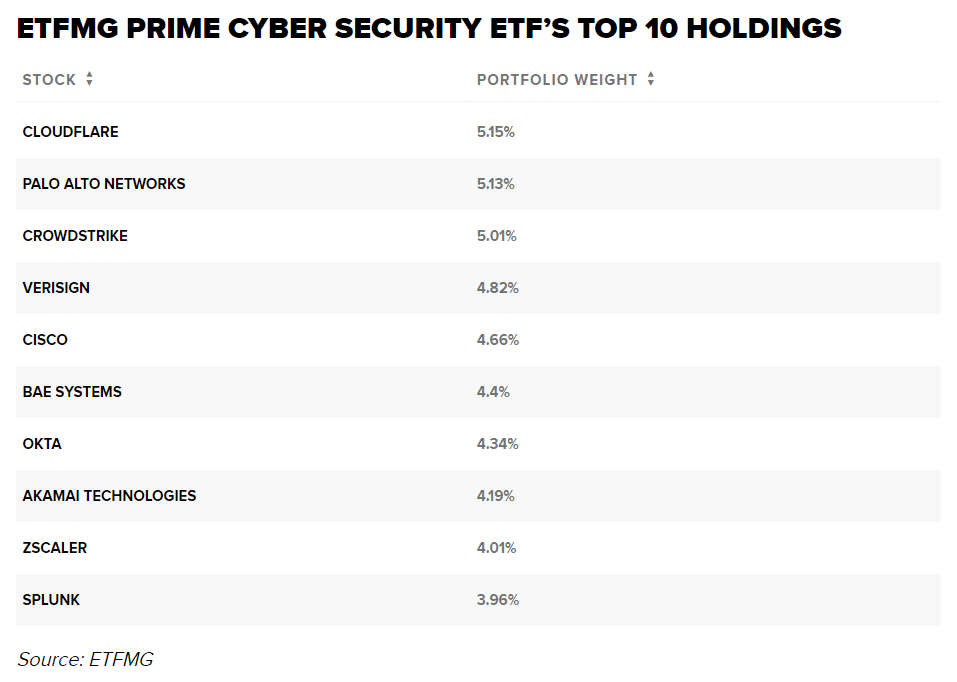 „S tím, jak se stále více našich životů přesouvá do digitální sféry, budeme potřebovat více firewallů a více zabezpečení, abychom se ochránili,“ řekl. „Myšlenka vlastnit ETF místo jednoho konkrétního hráče – máte celý koš a vezete se na vlně dalších kapitálových investic do kyberprostoru.“