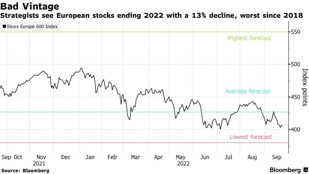 Zhoršující se výhled stratégů přichází v těžké době pro region, který se potýká s rostoucí inflací, jestřábí centrální bankou, energetickou krizí a obavami z recese. Od srpnového průzkumu devět z dotazovaných firem snížilo své prognózy a na základě současného průměru index směřuje k meziročnímu poklesu o 13 %. To by se vyrovnalo roku 2018, který byl jedním z nejhorších za více než dvě desetiletí.