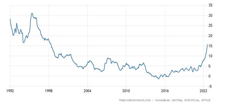 Inflace v Maďarsku – Zdroj: Tradingeconomics.com