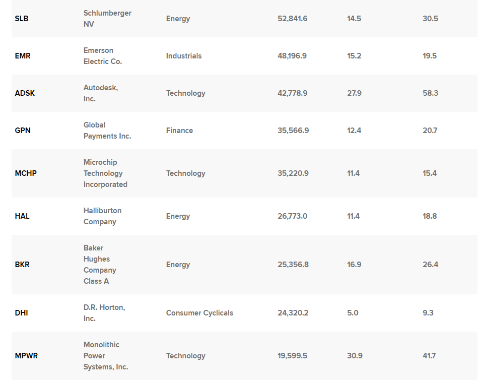 Na seznamu se objevily také čtyři energetické společnosti. Jedním z nich je Halliburton, který od začátku roku vzrostl o 25 %, ale na základě forwardového P/E je stále levný. Obchoduje se s téměř 40% slevou oproti historickému pětiletému průměrnému forwardovému P/E. Akcie, které ve středu klesly spolu s dalšími energetickými jmény a cenami ropy v důsledku oslabení spotových cen energií, mají podle společnosti FactSet ještě 48% nárůst průměrné cílové ceny.