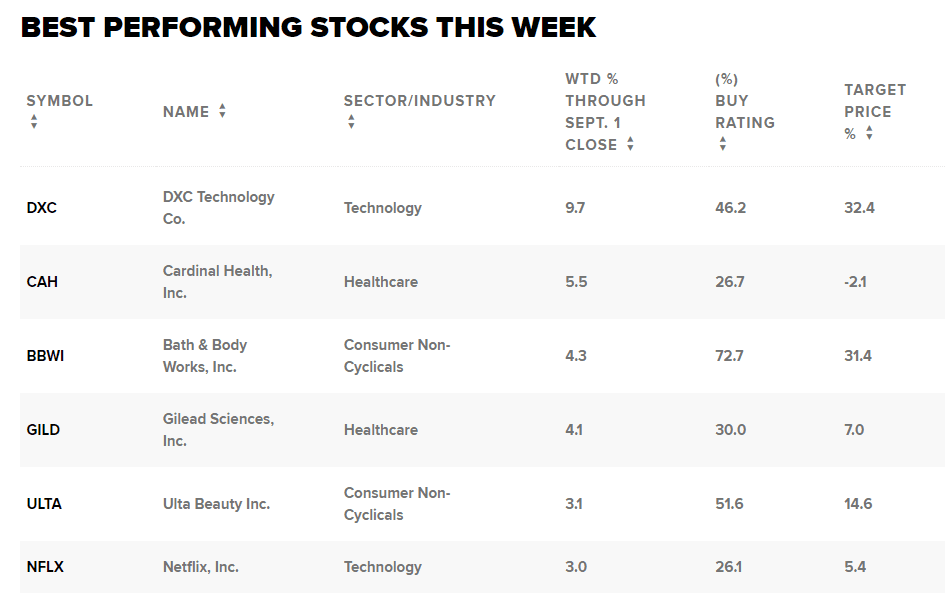 Následují společnosti, kterým se tento týden dařilo, a jak se k akciím staví analytici. Pro nalezení těchto jmen vyhledala CNBC Pro akcie v této oblasti, které měly od začátku týdne do konce týdne nejlepší výkonnost.