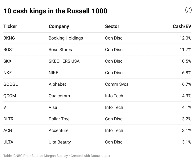 Podle Morgan Stanley si kupte tyto peněžní krále pro ochranu proti poklesu a flexibilitu v těžkých tržních podmínkách