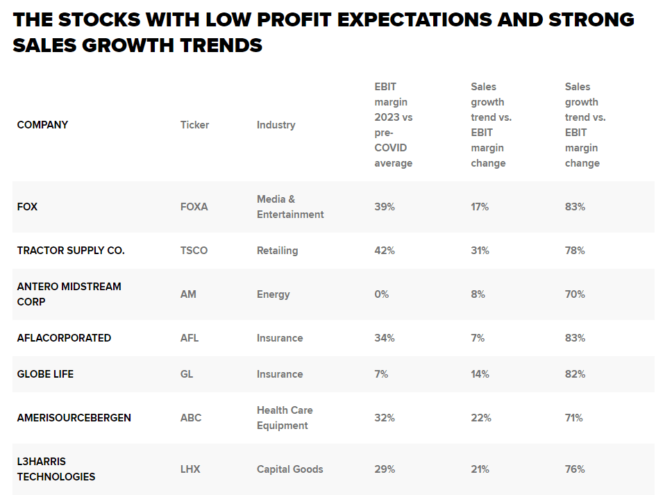 S ohledem na to banka UBS sestavila seznam, které akcie by investoři měli v tomto prostředí nakupovat. Tyto společnosti mají nižší očekávanou marži EBIT oproti průměru před pandemií, ale očekává se, že v roce 2023 budou vykazovat silný růst tržeb.