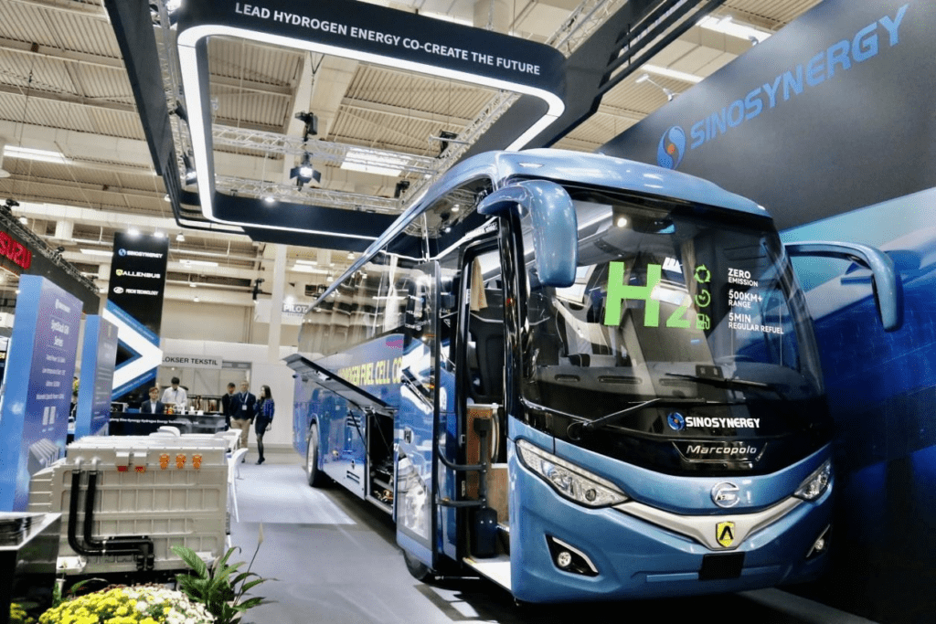 Společnost Sino-Synergy, formálně známá jako Guangdong Sino-Synergy Hydrogen Energy Technology Co., podle svých internetových stránek vyrábí vodíkové palivové články a poskytuje systémová řešení. Firma, založená v roce 2015, vybudovala v roce 2017 výrobní základnu pro výrobu vodíkových palivových článků. O rok později zahájilo ve městě Fo-šan v provincii Kuang-tung provoz přibližně 70 autobusů vybavených jejími výrobky s palivovými články a v roce 2019 byly dodány tři autobusy do Malajsie.