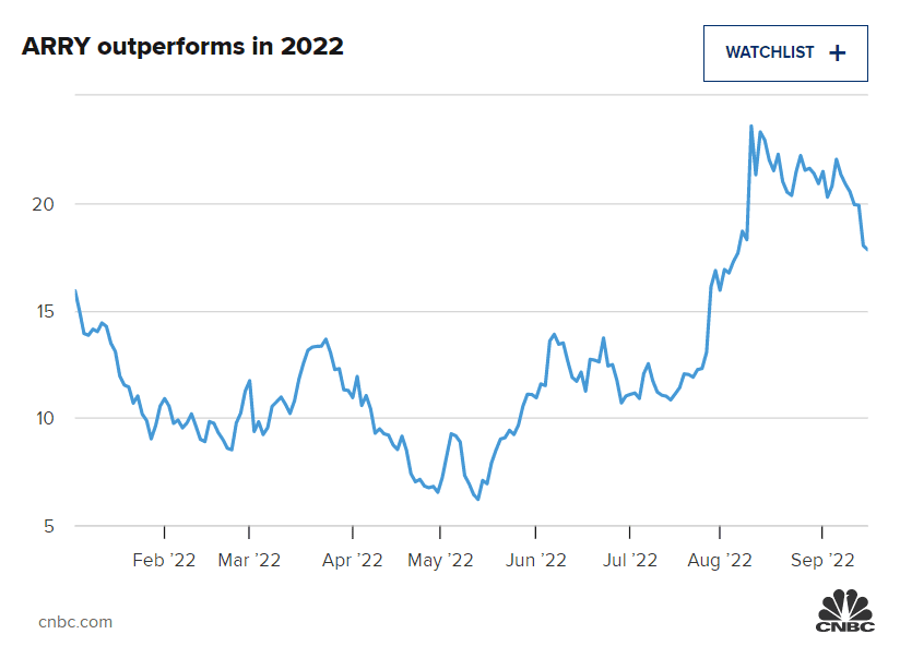 „Zvyšujeme hodnocení ARRY na Overweight z neutrálního, protože: 1) věříme, že silná kniha objednávek společnosti vytváří potenciál pro atraktivní výhled tržeb/EBITDA na rok 23 (PSC: >20 % vs. 20 %),“ uvedl analytik. 2) považujeme společnost ARRY za beneficienta požadavků IRA na domácí obsah spolu s výrobními úvěry; 3) líbí se nám zaměření nového generálního ředitele na přechod k tvorbě FCF (60-65% cíl konverze FCF/EBITDA) prostřednictvím příznivějších CCC, což společnosti umožní organicky snížit zadlužení rozvahy; a 4) věříme, že realizace se začíná ubírat správným směrem,“ napsal Harrison v nedělní zprávě.
