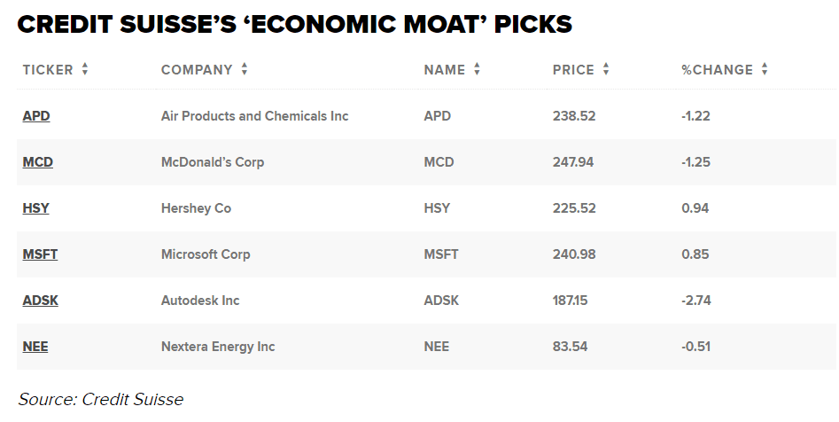 Firma očekává, že společnosti s „ekonomickými příkopy“ by mohly investorům pomoci ochránit jejich portfolia před rostoucí ekonomickou nejistotou. Jedná se o termín zpopularizovaný legendárním investorem, který označuje schopnost společnosti udržet si konkurenční výhody oproti svým konkurentům, jako je lepší obchodní model nebo rozsah.