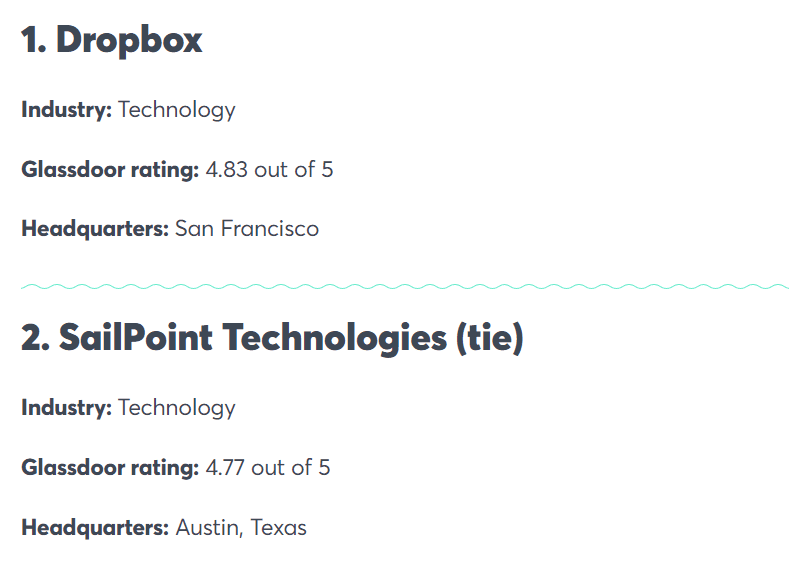 V seznamu dominují technologické společnosti, a to i přes měsíce neustálých titulků o zmrazování náborů a hromadném propouštění, protože mnoho zaměstnavatelů v tomto odvětví nadále nabízí flexibilní politiku práce z domova, zatímco jiné společnosti volají lidi zpět do kanceláře, říká Daniel Zhao, senior ekonom a datový vědec ve společnosti Glassdoor, pro CNBC Make It.