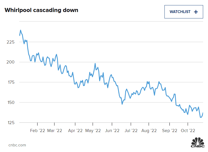 Akcie společnosti Whirlpool se od počátku roku propadly o více než 41 %, což je méně než 19% pokles indexu S&P 500.