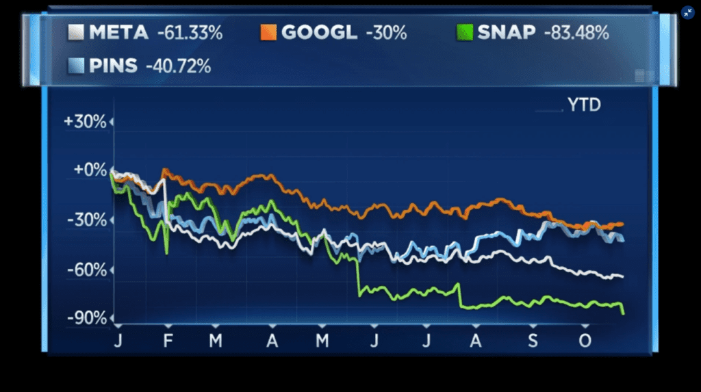 Ekonomický pokles a obavy z recese přiměly mnoho marketérů omezit výdaje. Zároveň loňská změna ochrany osobních údajů v systému iOS od společnosti Apple nadále trestá společnosti – zejména Snap a Facebook – které se v minulosti spoléhaly na údaje uživatelů při cílení reklamy.