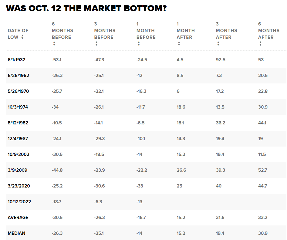 Společnost Bespoke nicméně uznala, že investoři mohou zaznamenat růst, pokud vstoupí na skutečném minimu, a uvedla mediánové zisky ve výši 15,2 %, 19,4 % a 30,9 % během prvních jednoho, tří a šesti měsíců po studovaných historických minimech. To podle Bespoke znamená, že odraz zpět byl obvykle stejně velký nebo větší než předchozí pokles.