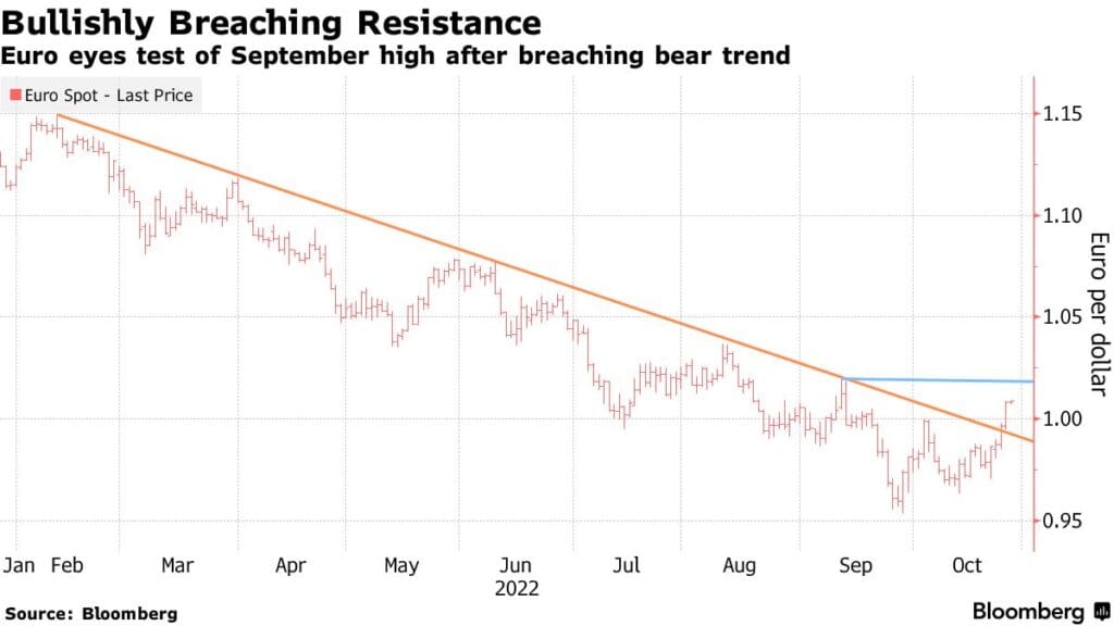 Investoři se zaměří na to, jak bude měna reagovat na čtvrteční rozhodnutí Evropské centrální banky, vzhledem k tomu, že inflace v eurozóně minulý měsíc vzrostla na rekordních 9,9 %. Jakékoli pohyby však mohou být tlumené, neboť trhy již téměř plně počítají se zvýšením o sedmdesát pět bazických bodů.