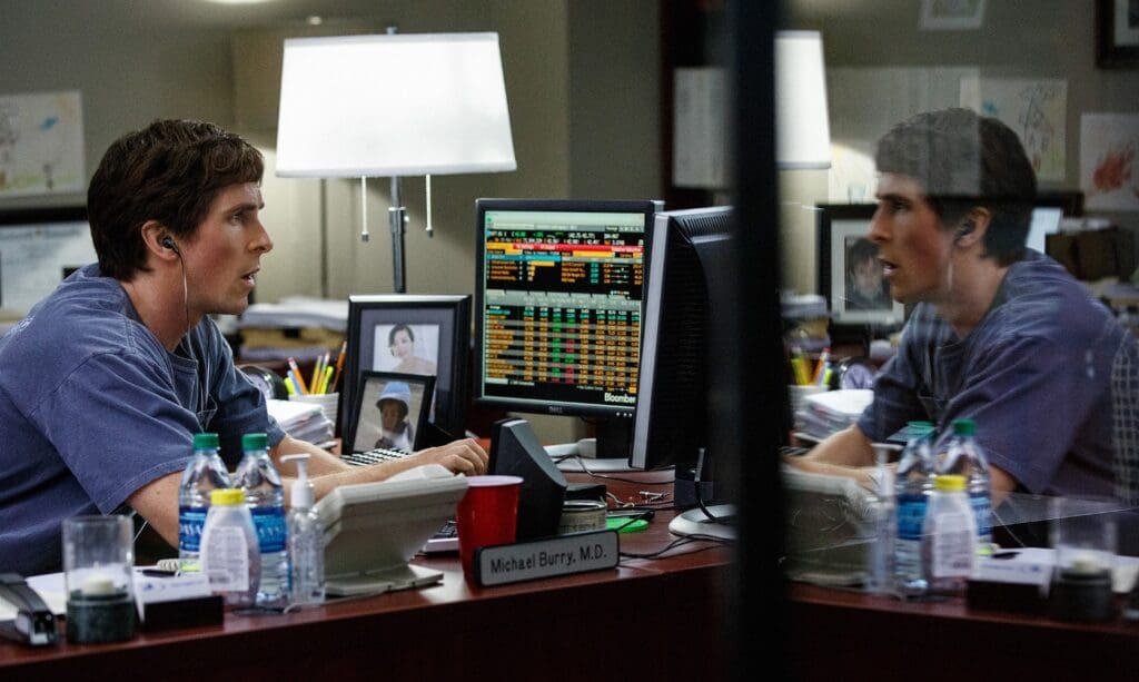 Manažer hedgeového fondu Michael Burry, kterého hraje Christian Bale, si situaci uvědomuje a předvídá příchod finanční krize. Své poznatky využije ve svůj prospěch a brzy se celý domeček z karet zhroutí, jak předpověděl.