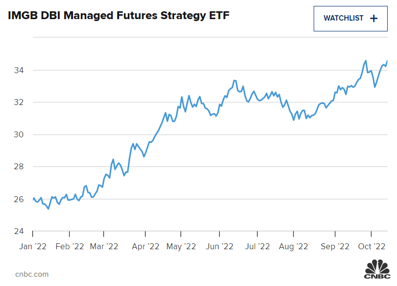 To na oplátku přilákalo investory, kteří zoufale hledali nějaký způsob, jak diverzifikovat svá portfolia, protože akciové i dluhopisové trhy procházely výkyvy. Fond iMGP DBi, který od začátku roku vzrostl o 33 %, podle údajů společnosti FactSet zaznamenal v letošním roce příliv více než 900 milionů USD. Podle společnosti VettaFi je tento fond zdaleka největším ETF s řízenými futures.
