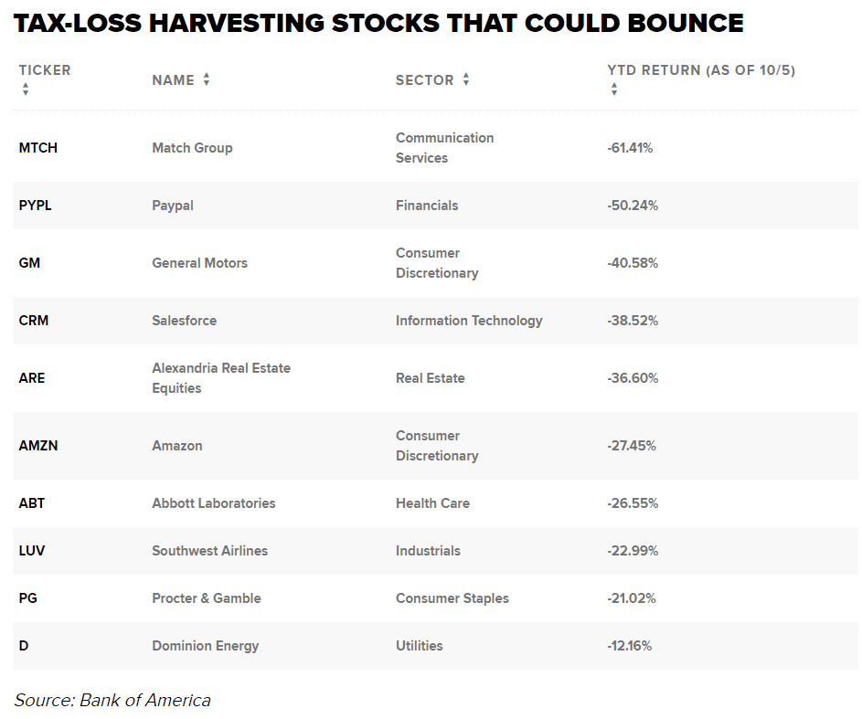 „Letošní rok by mohl být pro sklízení daňových ztrát obzvlášť velký vzhledem k vysokému počtu akcií, které [od začátku roku] klesly … a vyššímu potenciálu pro následný větší odraz těchto akcií po výprodeji,“ napsala ve čtvrtek Savita Subramanianová, vedoucí oddělení amerických akcií a kvantitativní strategie Bank of America.