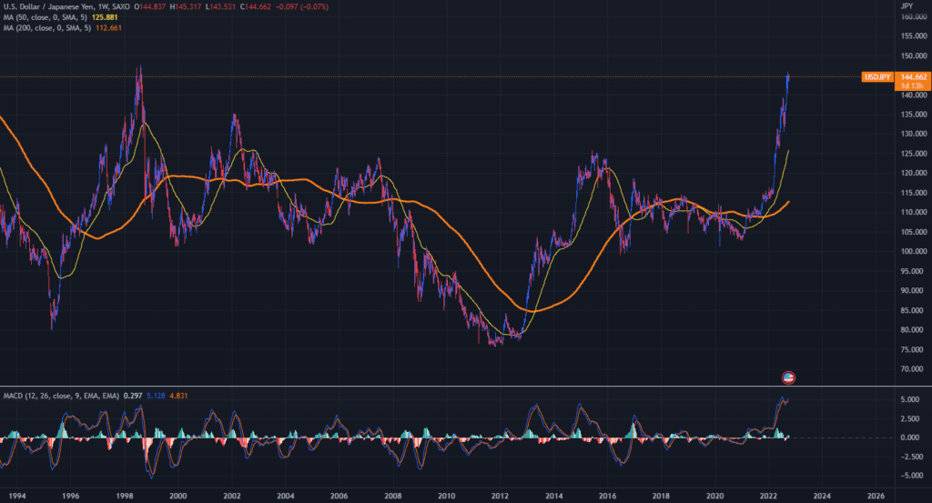 Japonská měna se letos vůči dolaru propadla o více než 20 % kvůli prohlubujícímu se měnověpolitickému diferenciálu s USA, což poprvé od roku 1998 vyvolalo vládní intervenci na podporu jenu. Rostoucí obavy z globální recese zatím nenabízejí útočiště a jen se obchoduje blízko nejslabší hodnoty od asijské finanční krize.