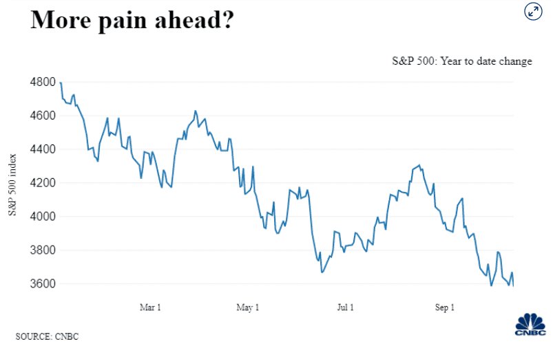 Akciový index S&P 500 se v tomto roce propadl přibližně o 22 % a minulý týden dosáhl v souvislosti s divokými cenovými výkyvy nového minima v roce 2022.