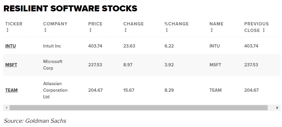Akcie softwarových firem letos dostaly zabrat, ale Goldman Sachs si myslí, že v této oblasti existují jména, která mohou odolat prudkému hospodářskému poklesu.