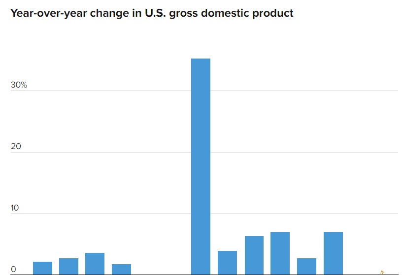 Ekonomika se vrací z poklesu HDP o 1,6 % v prvním čtvrtletí a o 0,6 % ve druhém čtvrtletí. To splňuje kritéria dvou po sobě jdoucích čtvrtletí záporného růstu, která jsou obecně uznávána jako recese. Sledování HDP atlantského Fedu odhaduje růst ve třetím čtvrtletí na 2,4 %. Odhad byl po pátečních údajích o osobních výdajích a příjmech výrazně revidován směrem nahoru.