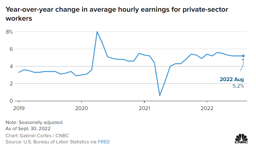 Za prvních osm měsíců letošního roku vzrostly mzdy v nezemědělském sektoru o 3,5 milionu a průměrný hodinový výdělek se zvýšil o 5,2 % na dvanáctiměsíční bázi, což je na historické poměry závratné tempo, které však stále nestačí na to, aby udrželo krok s 8,3% mírou inflace.