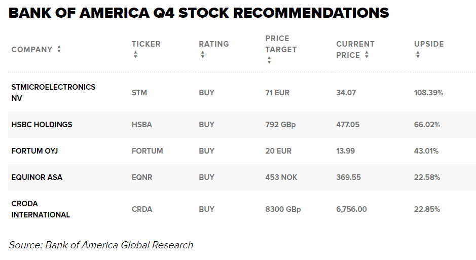 Bank of America odhalila své globální tipy pro toto čtvrtletí a jedné z akcií dává více než 100% nárůst