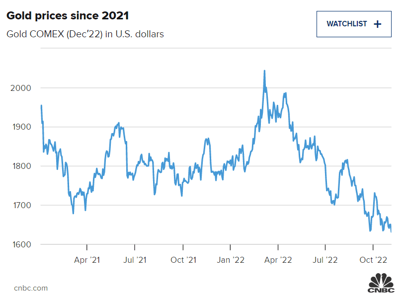Zlato je tradičně považováno za pojistku proti inflaci. Rostoucí úrokové sazby však odlákaly investory od zlatých kovů, protože zvýšily náklady obětované příležitosti spojené s držbou tohoto aktiva s nulovým výnosem.