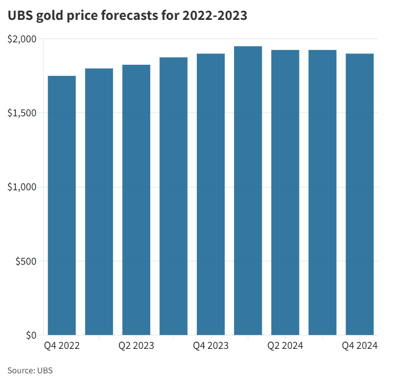 Od března, kdy ceny zlata překročily 2 000 USD za unci, což je téměř historické maximum, poklesly o 18 %. Spotové zlato se v pondělí obchodovalo kolem 1 676 dolarů za unci a podle UBS by ceny měly do konce roku 2023 dosáhnout 1 900 dolarů za unci.