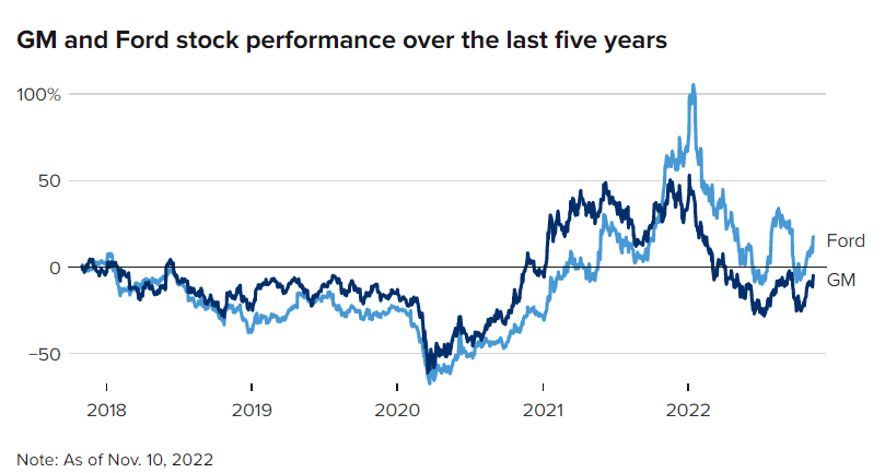 Podle zpráv analytiků sestavených společností FactSet si Wall Street udržuje průměrné hodnocení „overweight“ pro obě akcie. Obě automobilky v letošním roce ztratily více než 30 % kvůli obavám investorů, že jejich ziskové období rozkvětu v době pandemie koronaviru je ve světle rostoucích úrokových sazeb, inflace a obav z recese již za nimi.