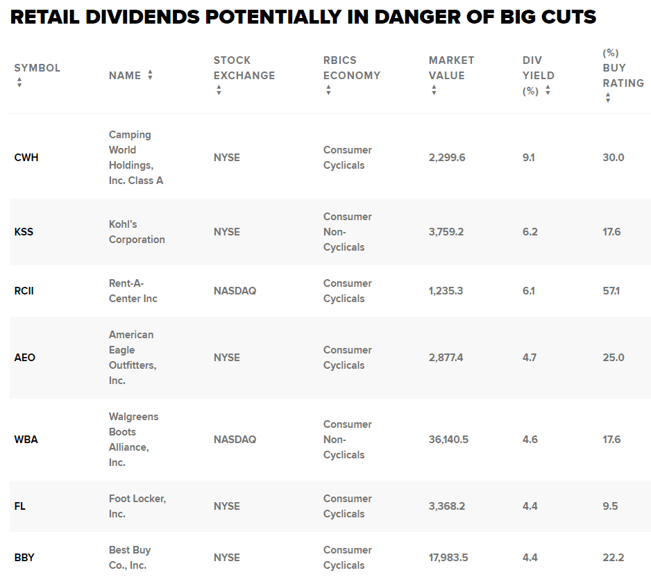 Také některé finanční ukazatele maloobchodníků, které pomáhají měřit udržitelnost dividend, se natahují.
