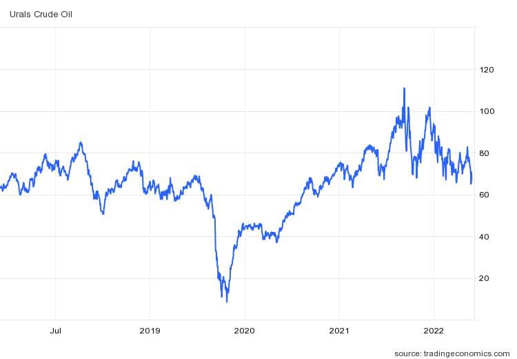 Před útokem na Ukrajinu nakupovala Čína jen malé objemy ropy Urals, ale v květnu se tento objem začal zvyšovat a v červnu dosáhl maxima 739 860 tun.