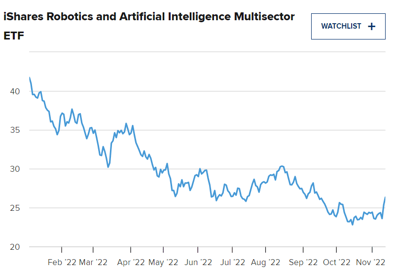 K dispozici je iShares Cybersecurity and Tech ETF, IHAK a IRBO, iShares Robotics and Artificial Intelligence Multisector ETF.