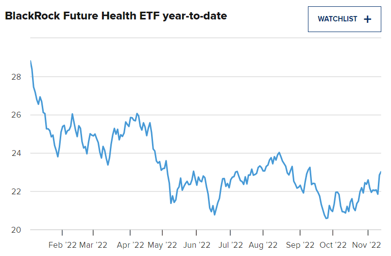Upřednostňuje oblasti inovací ve zdravotnictví, včetně genomiky, imunologie a neurologie. Tato témata pokrývají fondy BlackRock Future Health ETF, iShares Genomics and Immunology and Healthcare ETF a iShares Neuroscience and Healthcare ETF.
