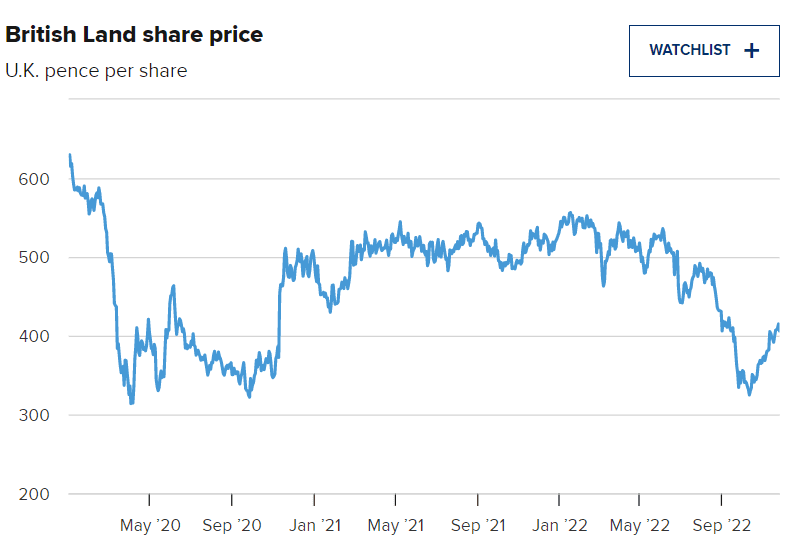 Podle banky UBS nabízí nyní společnost British Land výnos 7,1 %, což je o celý procentní bod nad jejím dlouhodobým průměrem. Investiční banka uvádí, že s každým zvýšením výnosu o 0,5 až 1 procentní bod klesne hodnota o 15 až 20 %.