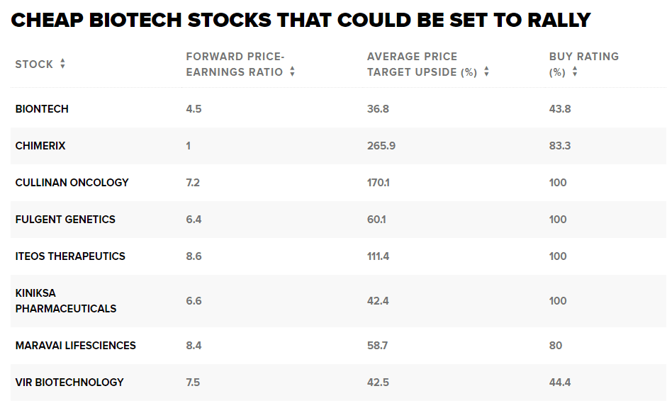 Jedna akcie – Chimerix – měla průměrný růst cílové ceny o 266 % od analytiků, z nichž 83 % jí udělilo nákupní hodnocení.