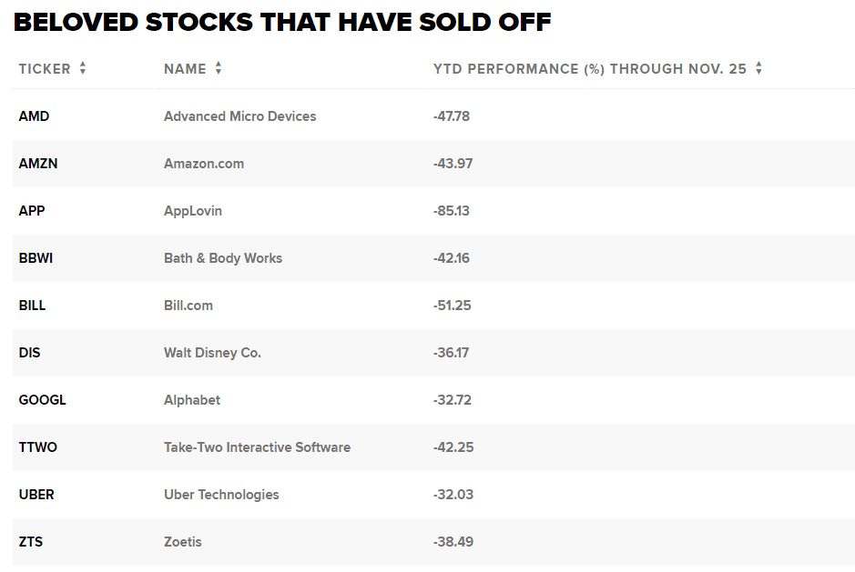 Mezitím se na seznamu Morgan Stanley objevila také společnost Disney, jejíž očekávání Wall Street ohledně horních a dolních řádků se naplnila. Firma 21. listopadu potvrdila své doporučení „overweight“ poté, co se Bob Iger vrátil do funkce generálního ředitele společnosti Disney. Akcie v roce 2022 poklesly o 36 %.