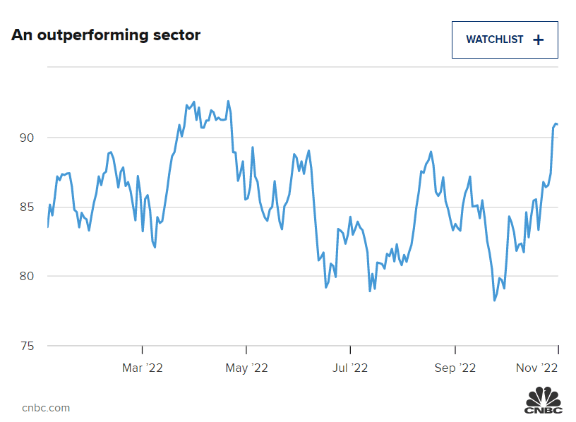 Uvedl, že sektor si „vydělává“ na cestu k vyšším úrovním zisků. To kontrastuje s jinými oblastmi trhu, jako jsou například velké technologie, které zatím v sezóně zisků za třetí čtvrtletí tak silně nepůsobily.