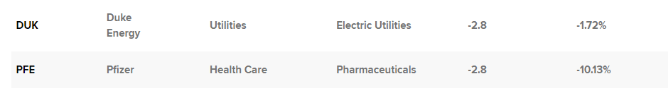 V oblasti veřejných služeb má společnost Duke Energy (DUK) beta -2,8 a do úterního závěru letošního roku ztratila přibližně 2 %. V listopadu energetická společnost vykázala nižší zisk, když její zisk na akcii za třetí čtvrtletí dosáhl 1,78 USD oproti odhadu StreetAccount ve výši 1,84 USD. Tržby však dosáhly 7,97 miliardy USD, což je více než očekávaných 7,39 miliardy USD.