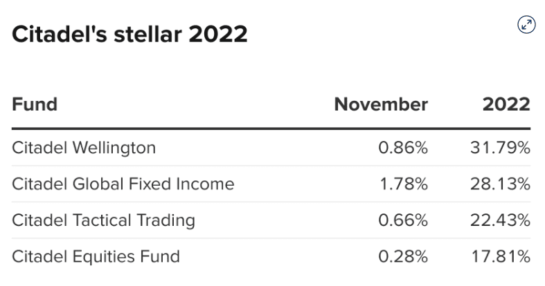 Hedgeový fond Citadel Kena Griffina v listopadu opět roste a v roce 2022 dosáhl zisku 32 %
