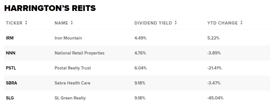 Vlastní několik jmen, včetně společnosti Iron Mountain, která podporuje ukládání a vyhledávání informací pro podniky. V současné době má výnos 4,5 % a od počátku roku vzrostl o více než 5 %. Na jejím seznamu jsou také National Retail Properties, Postal Realty Trust, Sabra Health Care a SL Green Realty.