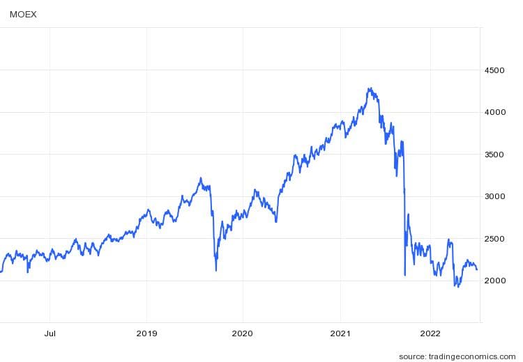 Lukoil PJSC a Gazprom PJSC, nejvýznamnější členové indexu MOEX, se letos propadly o 30 %, resp. 53 %. Největší kótovaný věřitel, Sberbank of Russia PJSC, se mezitím propadl o 54 %, protože mezinárodní sankce zasáhly vše od možnosti Ruska přistupovat k devizovým rezervám až po systém bankovních zpráv SWIFT.
