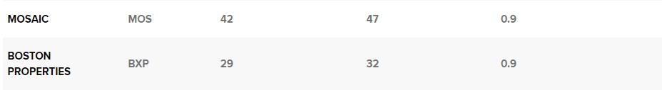 Společnost Tyson Foods, která se za celý rok propadla přibližně o 30 %, vede v koši spotřebního zboží s poměrem Sharpe 0,8. Citigroup, Mosaic a Boston Properties – rovněž nováčci v seznamu spolu s Tysonem – jsou mírně před distributorem potravin s hodnotou 0,9.