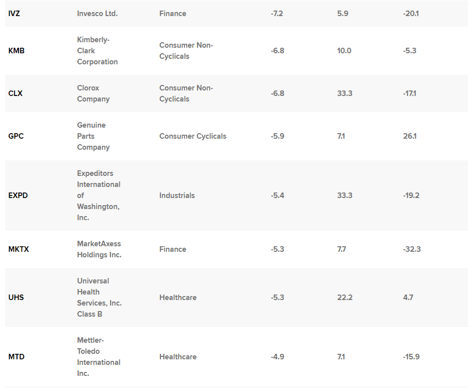 Podle průměrné cílové ceny analytiků společnosti FactSet má největší pokles v příštím roce správce aktiv Franklin Resources (BEN), který by měl ztratit 12 %. Přibližně 33 % analytiků, kteří se zabývají touto akcií, ji hodnotí jako prodejní. K 30. listopadu spravovala firma aktiva v hodnotě 1,4 bilionu dolarů, což je nárůst oproti 1,318 bilionu dolarů k 31. říjnu. Franklin Resources se letos zatím propadla o 23 %.