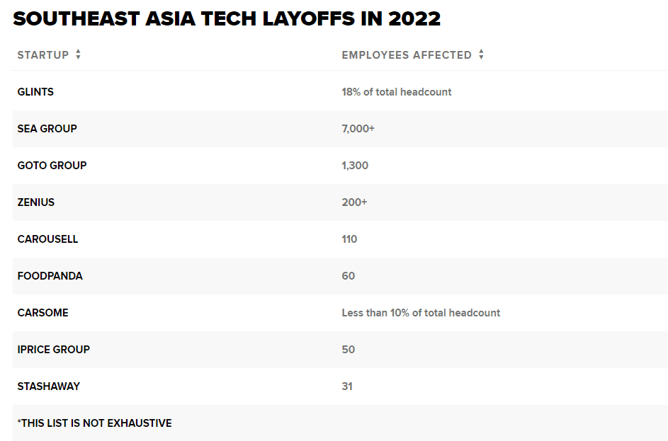 V jihovýchodní Asii letos propouštělo více technologických startupů, protože makroekonomické faktory prohloubily ztráty a investoři rizikového kapitálu tlačili na startupy, aby prodloužily svou existenci.