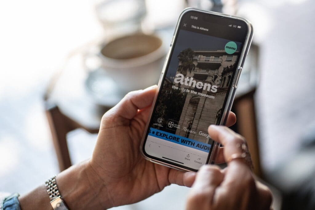 Za teplého a slunečného listopadového rána se v Aténách v kavárně a na místě konání akcí poblíž starobylého tržiště sešla směsice novinářů, uvolněných místních obyvatel a vládních úředníků, aby zde představili novou aplikaci, která je výsledkem spolupráce společnosti Google, ministerstva cestovního ruchu a města. Zatímco se účastníci rozkládali na modrých banketech s logem společnosti Olympic Airlines, přednášející vysvětlovali, jak kurátorované zvukové procházky aplikace nabízejí nový pohled na Atény, protože obsahují příběhy rodilých Atéňanů. Cílem je podle nich proměnit řecké hlavní město v „muzeum pod širým nebem“.