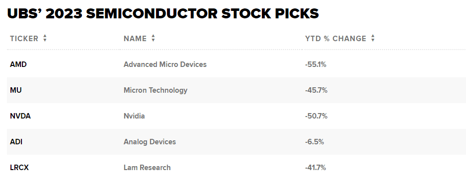 Společnost UBS odhalila své hlavní tipy na polovodičové akcie pro rok 2023