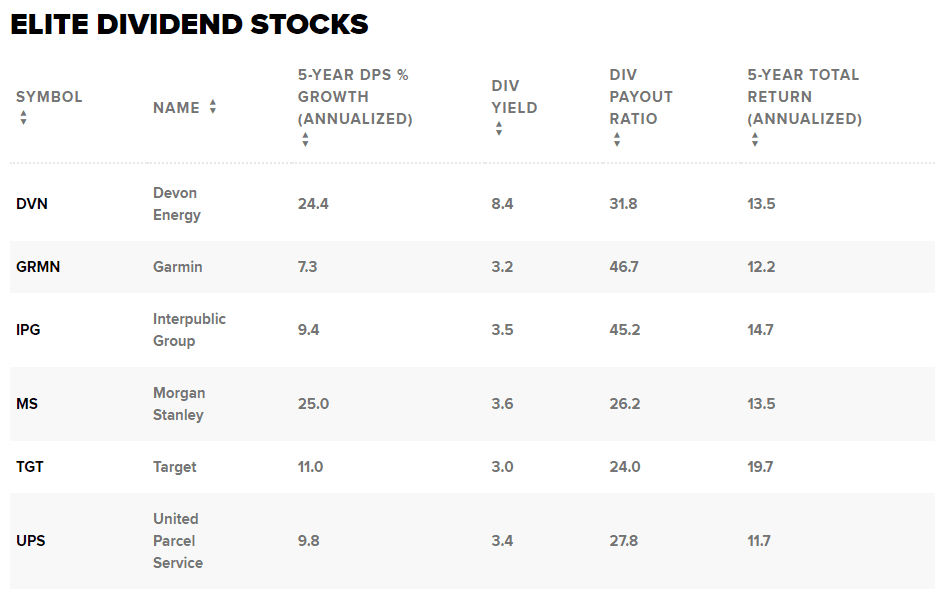 Jedním ze způsobů, jak toho dosáhnout, je najít akcie, které v minulosti zvyšovaly své dividendy a překonávaly trh, neprováděly pouze jednorázové výplaty a měly zdravou rozvahu.