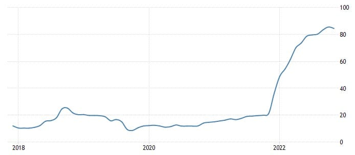 Inflace v Turecku – Zdroj: Tradingeconomics