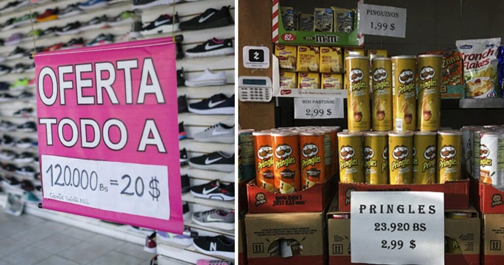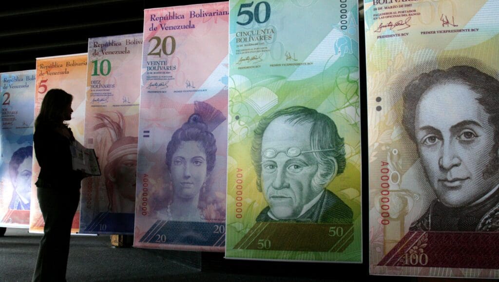 Místo něj se v Caracasu a dalších velkých městech de facto používá dolar. Podél západní hranice s Kolumbií je dominantní měnou peso. Podle výzkumné společnosti Ecoanalitica se používá ve více než 90 % transakcí v největším městě regionu, San Cristobalu. Dole na jižní hranici s Brazílií se často používá měna real. Své mezery má v některých částech země také euro a kryptoměny.