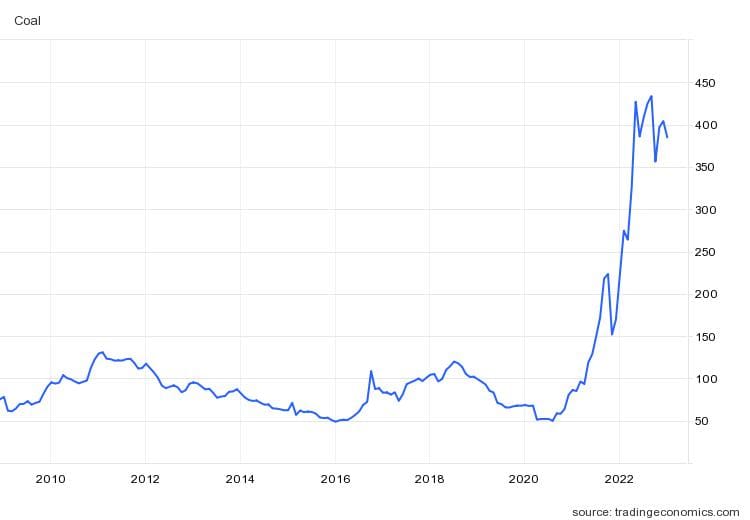 Ceny uhlí – Zdroj: Tradingeconomics.com